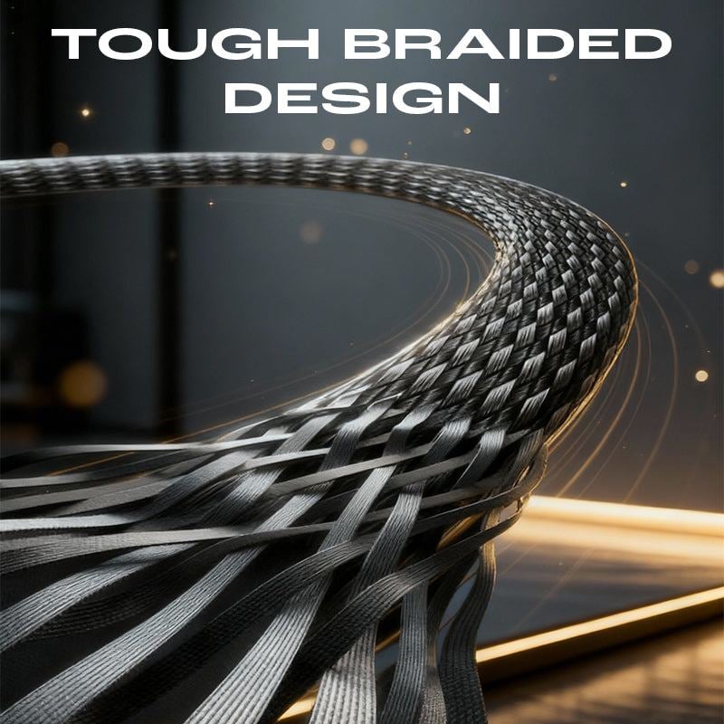 This 240W fast charging cable boasts a tightly woven braid, engineered for superior durability, resisting fraying and wear for reliable, long-lasting performance.